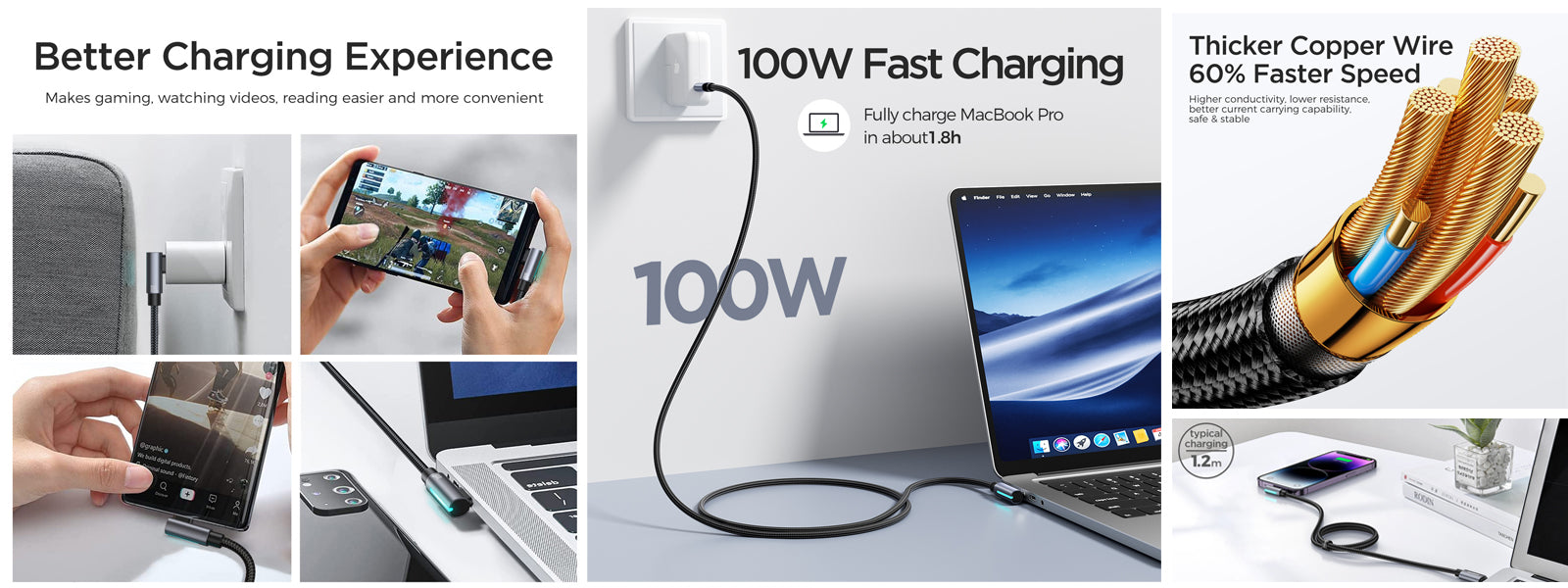 Type C to Type C Right Angle 100W Fast Charging Data Cable with 1.2m length