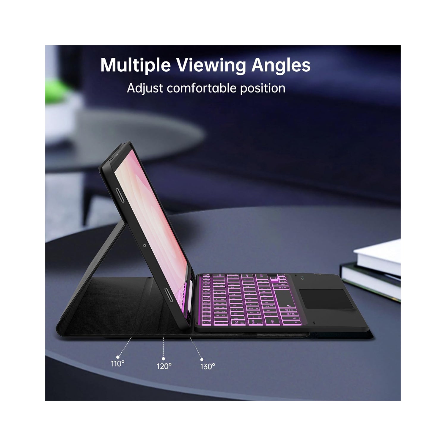 The bilingual wireless keyboard features smooth scissor-switch keys with adjustable backlighting, giving you a comfortable laptop-like typing experience day or night. The ultra-responsive 120Hz multi-touch trackpad supports smooth scrolling, pinch-to-zoom, swipe gestures, and precise navigation for a seamless tablet experience.